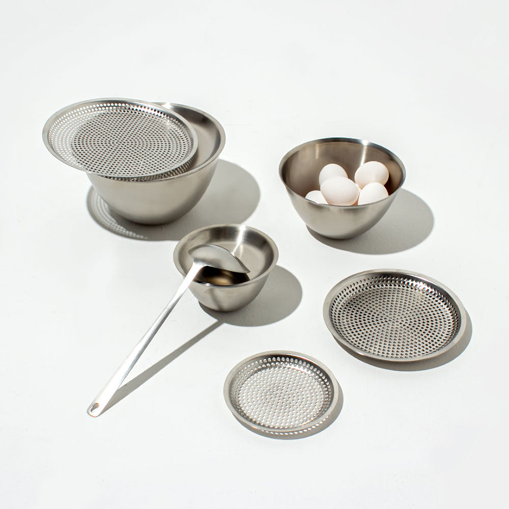 1977年に新潟県燕市で創業した一菱金属株式会社が作る台所道具のブランドconte。conteはボウルの開発をきっかけにスタートした自社ブランドで、派手さはないけれど、毎日の調理に欠かせなくなる使い心地を目指して始まりました。分業制の燕三条では、製品は工場から工場へ、一つの作業が終わるとコンテナと呼ばれる通い函で次の工程のために運ばれて行きます。その象徴とも言えるコンテナ(container)と、長く使われ続ける(continue)道具でありたいとの願いを込めた名前です。