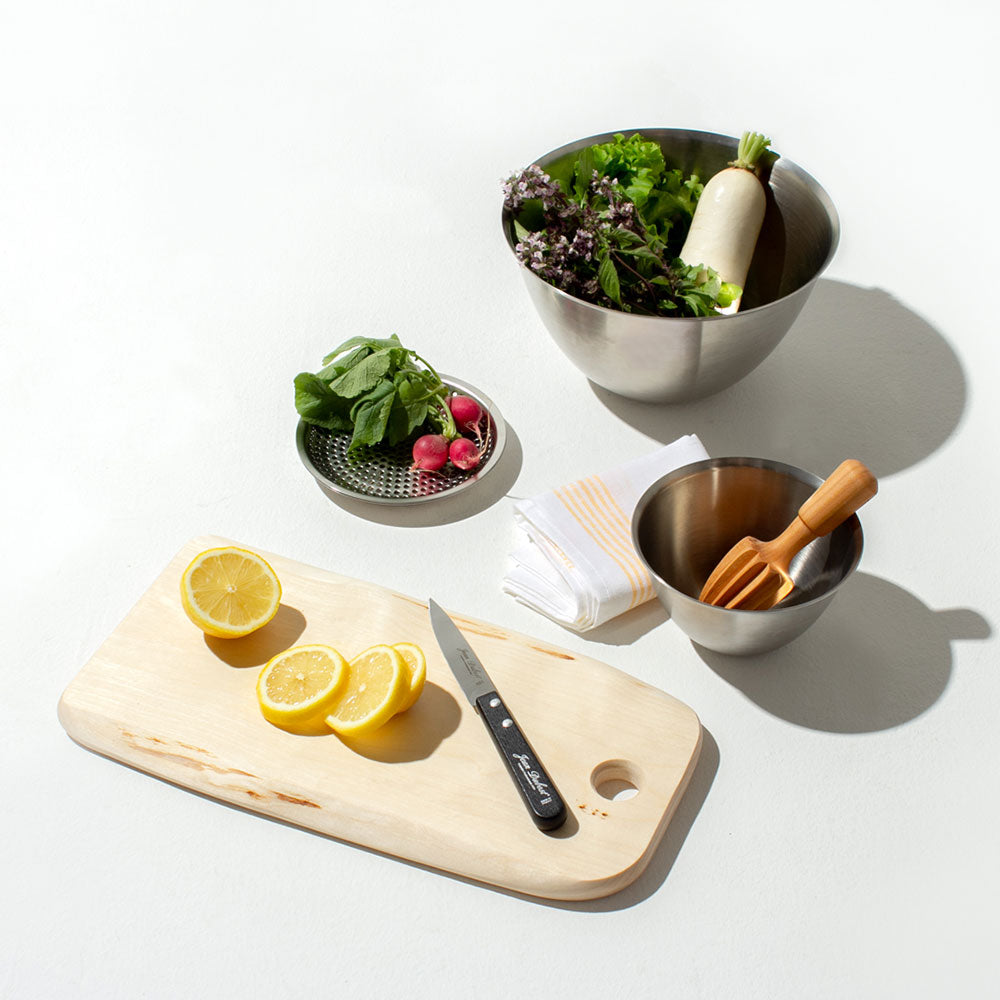 一見するとアノニマスな佇まいながら実はイタリア人のインダストリアルデザイナー、クノ プレイによるデザインのレモンスクイザー。モダンなデザインが思い浮かぶアレッシーの中でひと際目を引くプロダクトです。イタリアと言えば、リモンチェッロなどのお酒が人気で、レモンが文化に根付いており、多くのレモン用のプロダクトが開発されています。素材は、硬い木材として床材にも使用されるチェリーウッドを使用。握りやすいグリップとエッジの利いた削り部分を造り出すことで、力を入れずにレモンを絞ることが可能に。伝統的エッセンスと現代的なデザインの融合が、キッチンやテーブルの上でアクセントとして程よい存在感を与えてくれます。