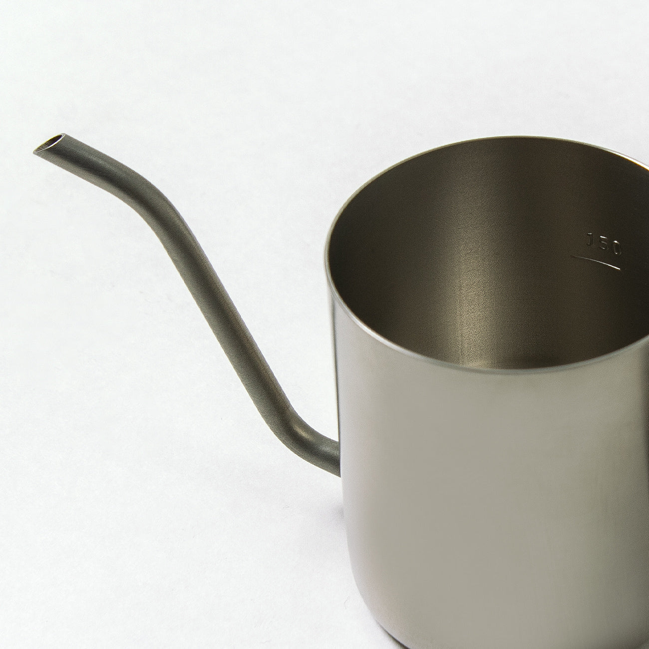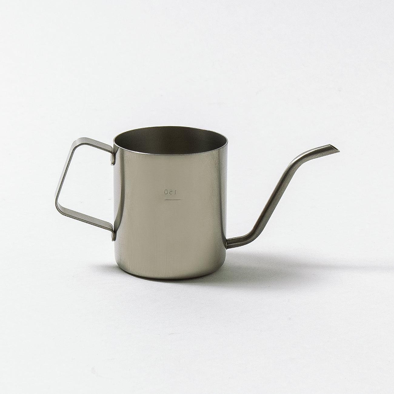 コンパクトなワンドリップポット(150mlの目盛り付き)。マグカップやコーヒーカップぴったりにお湯が注げます。沸かしたてのお湯を移しかえると適温に。重量が軽いので注ぎやすく、細口なのでゆっくり静かに注ぐことができます。