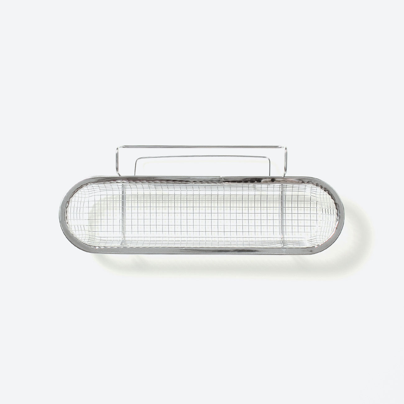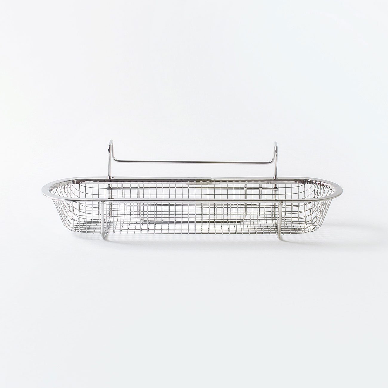 水切りバスケットのフチに掛けてお使いいただける箸水切りザル。横型なので洗った箸やカトラリーを一気に入れられ、取り出しもラクラク。網目が大きいので、水気をしっかり落とせて乾きやすい。お弁当のピックやフタのパッキン、お子様の小さなカトラリーの水切りにも便利です。