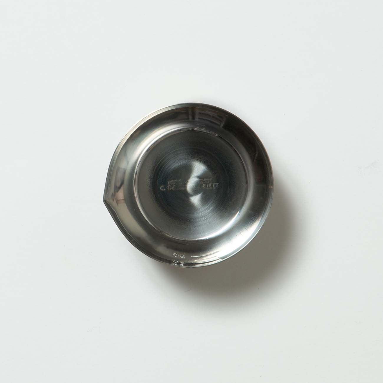 調味料の下準備に使える小分け調味ボウル(中サイズ)。あらかじめ計量しておくことで、手際良く調理ができます。フチがまかれていないので汚れがたまらず洗いやすいです。油引きの受け皿としても便利です。同じサイズをスタッキングした際の高さはプラス約1cm。違うサイズはきれいに入れ子に重なります。